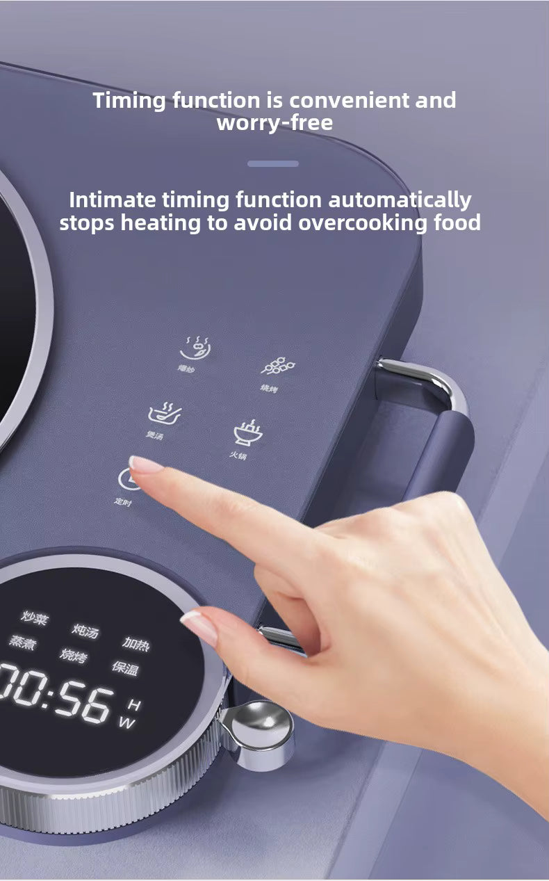 - Functions: Stir-fry, Hot Pot, Soup Stewing, Steaming, Boiling, Porridge Cooking, Milk Stewing, Temperature Adjustment, Mild Fire Stewing, Intense Fire